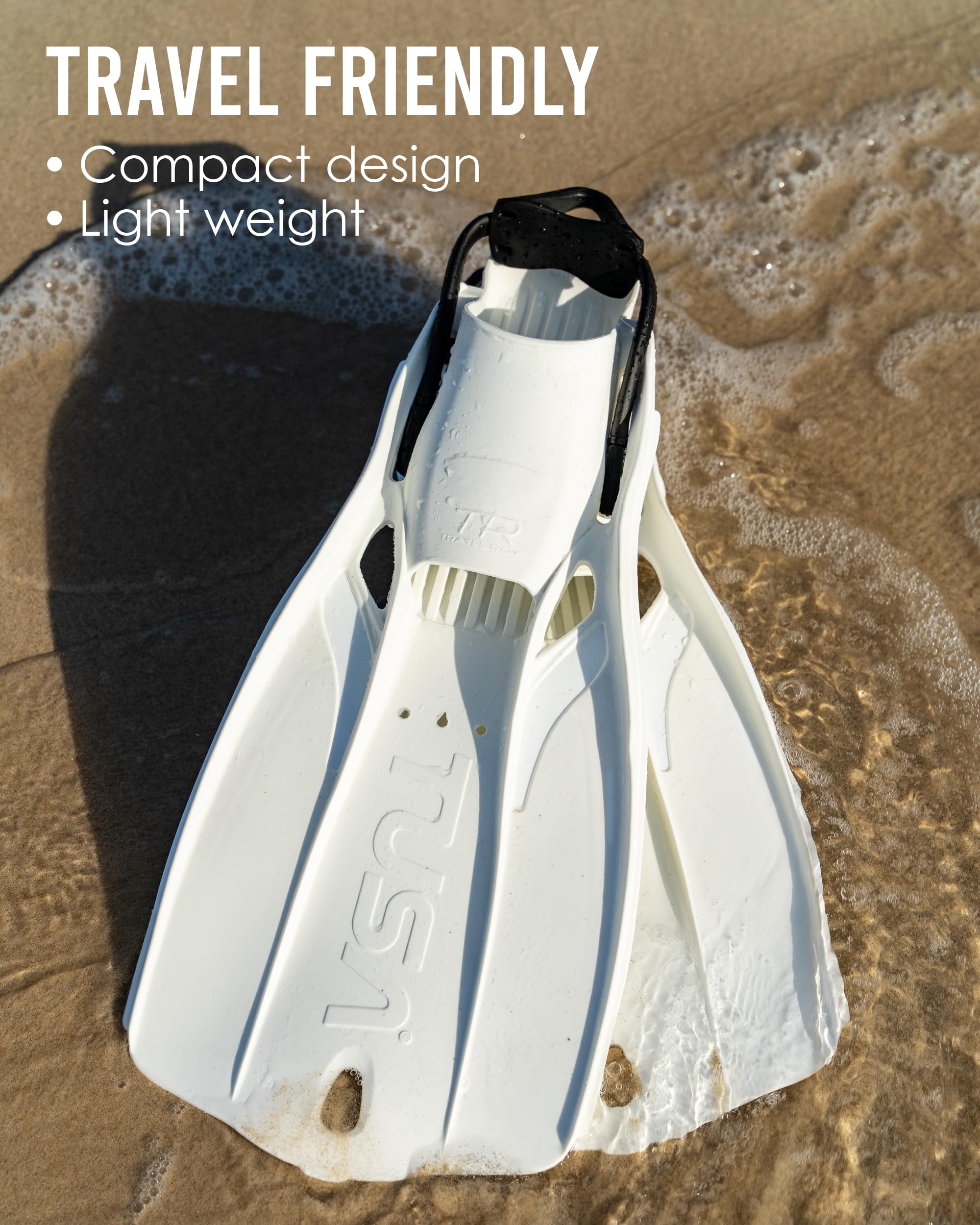 - BAREFOOT FREEDOM: The compact, light and travel friendly Travel Right fins can be worn barefoot due to the comfortable foot pocket design.